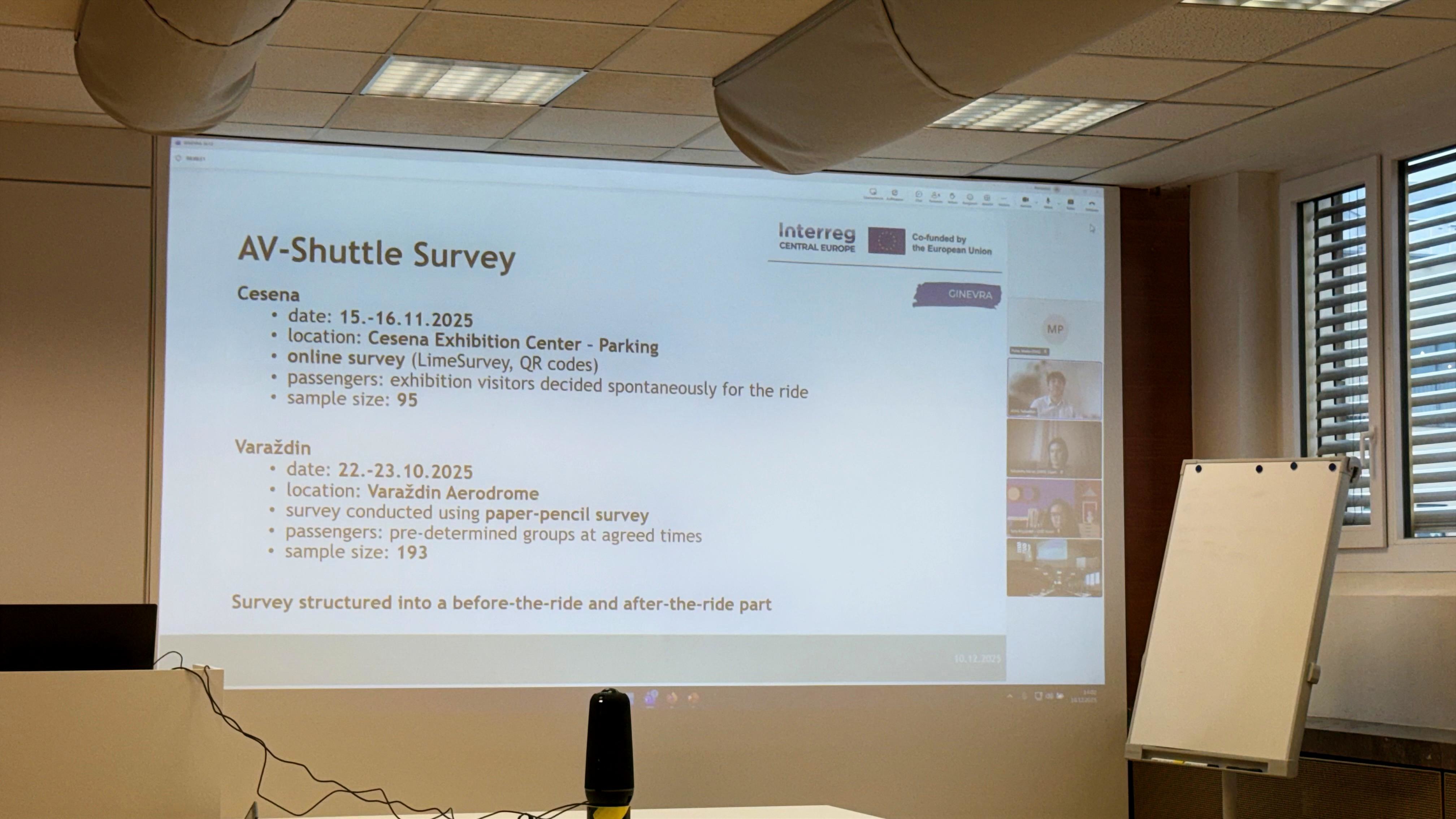 U Njemačkom, Karlsruheu je 10. i 11. prosinca 2025. godine održan 6. partnerski sastanak projekta GINEVRA – Governance of Transformative Innovation in Central European Cities: The AV Case, koji se provodi u okviru programa Interreg Central Europe. Na sastanku su razmijenjene informacije o napretku projektnih aktivnosti, s posebnim naglaskom na rezultate pilot-aktivnosti uključivanja građana i dionika te na provedbu tehnoloških demonstracija autonomnih vozila. Posebna pažnja posvećena je demonstracijama provedenima u Gradu Varaždinu i Gradu Ceseni (Italija). Tijekom izlaganja i rasprava, demonstracija autonomnih vozila u Gradu Varaždinu istaknuta je kao primjer dobre prakse, posebno u pogledu kvalitetne pripreme, koordinacije uključenih dionika, organizacije samog događaja te provedbe komunikacijskih aktivnosti prema građanima i javnosti.
