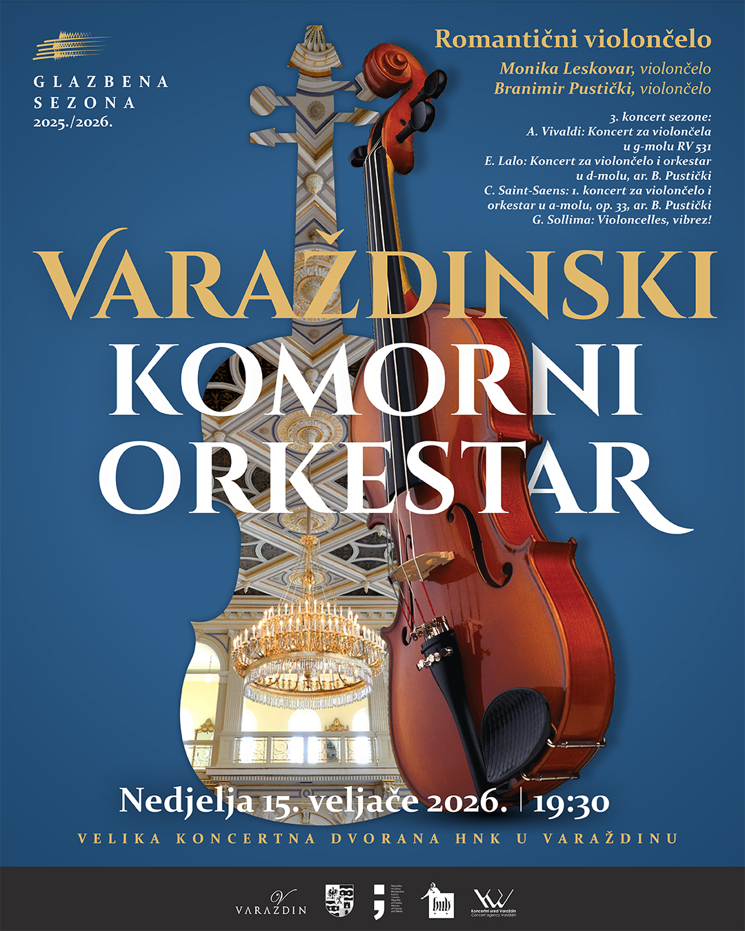 Na koncertu – Romantični violončelo, orkestar će izvesti atraktivni program na kojem će biti Koncert za violončelo i orkestar u d-molu francuskog skladatelja Edouarda Laloa, 1. koncert za violončelo i orkestar u a-molu op. 33 Camille Saint-Saensa te djelo Violoncelles, vibrez! talijanskog skladatelja i violončelista Giovannija Sollime.
