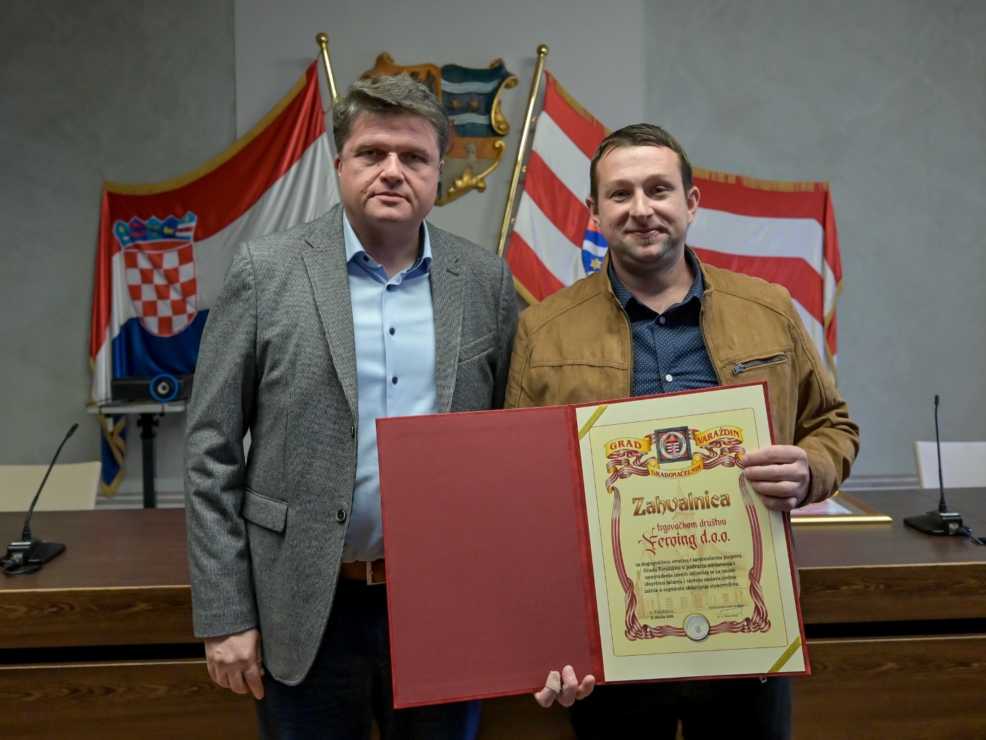 Feroing d.o.o., trgovačko društvo specijalizirano za skloništa sa sjedištem u Krščenovcu, zahvalnicu je primilo za višedesetljetni stručni doprinos projektiranju, održavanju i unapređenju javnih skloništa te kontinuiranu savjetodavnu i tehničku potporu Gradu Varaždinu u jačanju otpornosti i sigurnosti građana.