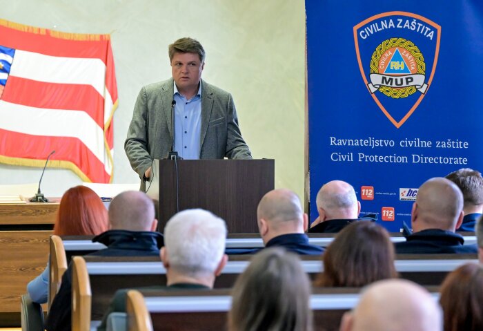 Klimatske promjene su realnost i predstavljaju velik izazov za sve nas, za načelnike stožera, načelnike općina naše županije, ali i za cijelu Republiku Hrvatsku, napomenuo je pročelnik Područnog ureda civilne zaštite Varaždin Ivica Matošić.