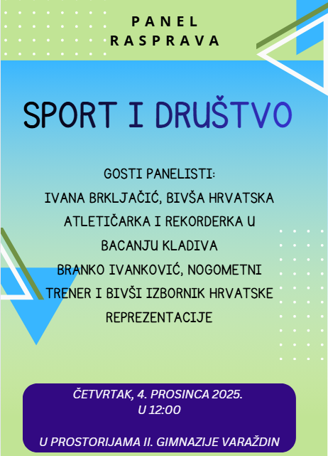 Zaklada solidarnosti Grada Varaždina poziva vas na panel raspravu pod nazivom „Sport i društvo“, koja će se održati u prostorijama II. gimnazije Varaždin, u četvrtak, 4. prosinca 2025. godine, s početkom u 12:00 sati.