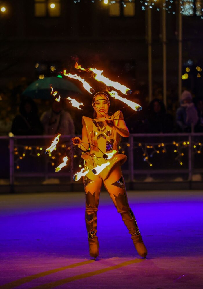 Pod svjetlima reflektora, uz najavu voditelja Frane Ridjana započeo je pravi show – svjetski poznati cirkuski klizači i umjetnici iz Dubaija oduševili su publiku i zapalili ledenu pozornicu sinkroniziranim točkama, akrobacijama, vatrenim performansom i impresivnim nastupima na štulama. Svaka točka izazivala je gromoglasan pljesak, a najmlađi su se posebno razveselili veselim Ice Wonderland maskotama – pingvinima na klizaljkama koji su dijelili čokoladna iznenađenja, klizali i veselo se fotografirali s djecom.