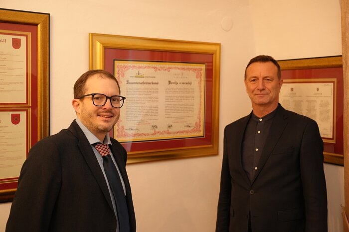 U subotu, 6. prosinca 2025. u Gradskoj vijećnici održan je kraći susret dužnosnika Grada Varaždina s predstavnicima partnerskog grada Schaffhausena iz Švicarske. Goste koji su prisustvovali jučerašnjoj svečanoj sjednici Gradskog vijeća povodom Dana grada Varaždina, blagdana svetog Nikole, u vijećnici su primili gradonačelnik Neven Bosilj i zamjenik gradonačelnika Miroslav Marković, zastupnik u Hrvatskom saboru.