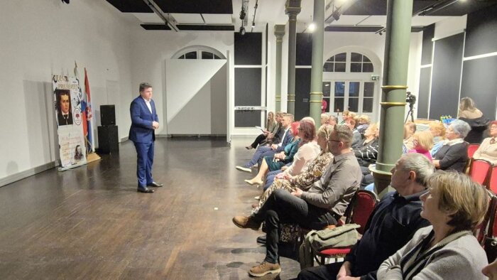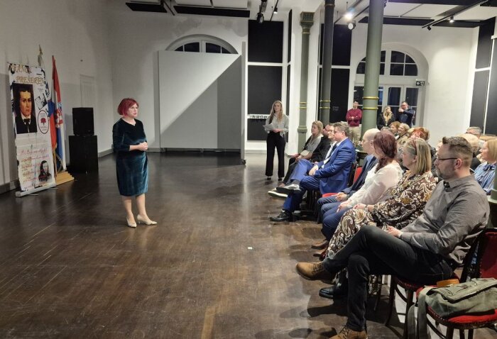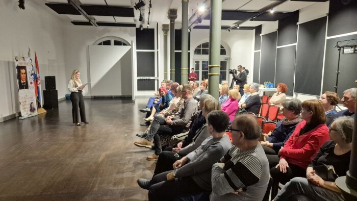 U ime organizatora, građane koji su došli na projekciju te uzvanike pozdravila je Lucija Vupora, potpredsjednica Slovenskog kulturnog društva Nagelj u svoje ime te u ime predsjednice Tanje Herceg.