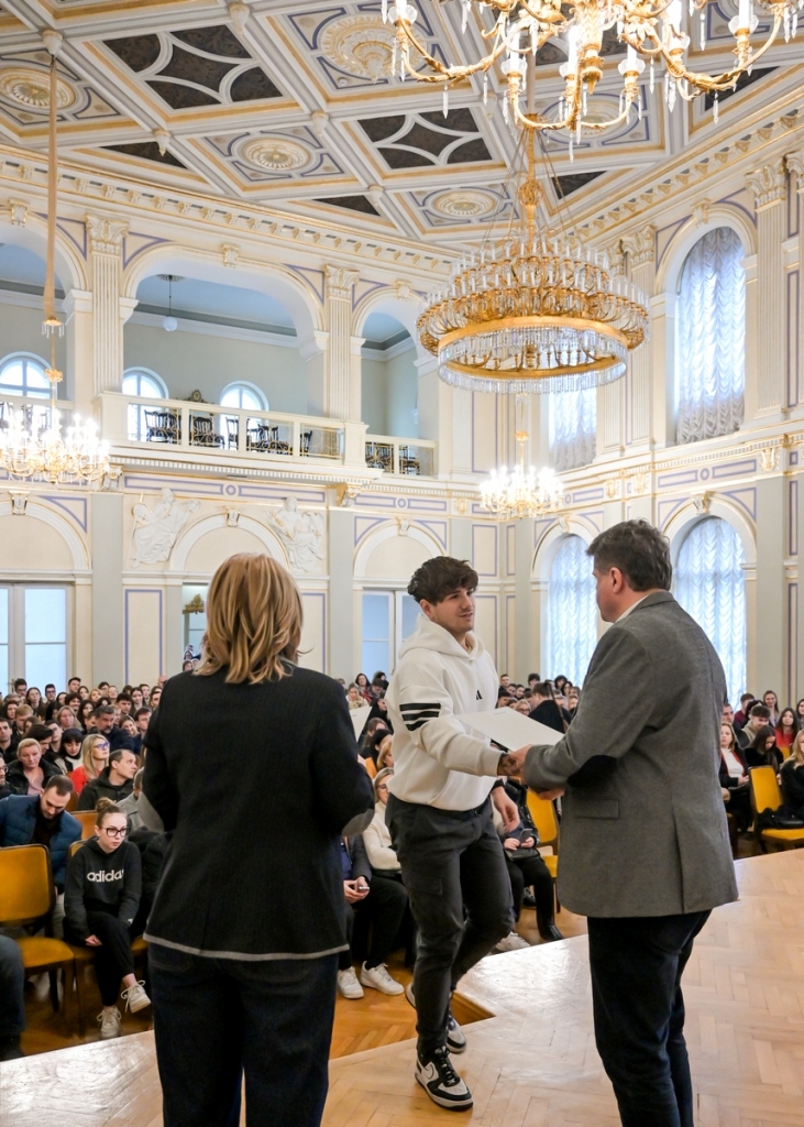Varaždinskim učenicima i studentima u subotu su u Velikoj koncertnoj dvorani HNK u Varaždinu uručeni ugovori o stipendiranju. Ove godine ukupno je dodijeljena 621 stipendija, 88 za učenike i 533 za studente, a ugovore su im uručili zamjenik gradonačelnika i saborski zastupnik Miroslav Marović i pročelnica Upravnog odjela za društvene djelatnosti Danijela Vusić.